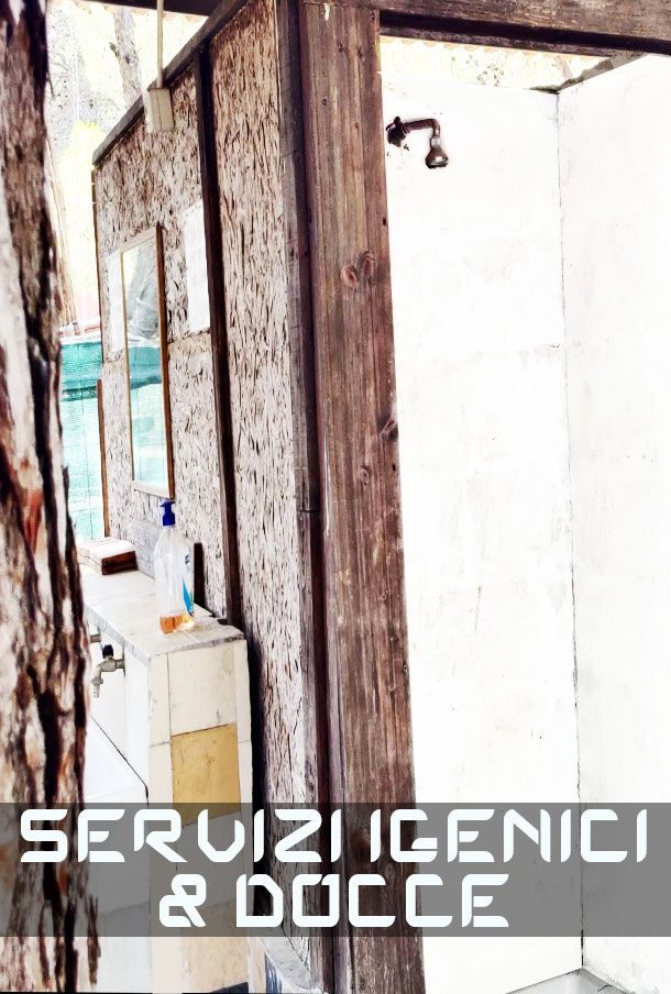 La struttura con bagni dispone di una doccia coperta, sono inoltre disponibili una batteria di docce esterne da utilizzare in giornate calde. In questo modo viene garantita la possibilità di lavarsi a turno anche a gruppi numerosi.